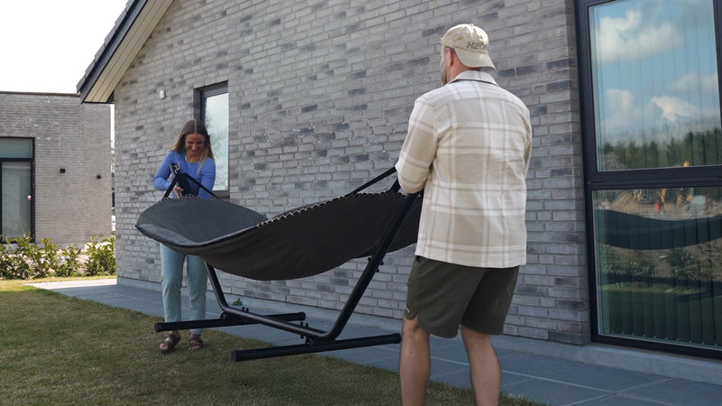 Cobana-hengekøya kan brukes ute hele sommeren. Hengekøyens Cobana-stoff er både vannavvisende og lysfast, og sørger for at hengekøya holder i årevis. Cobana Hammock - Aluminium er en hengekøye med stativ, og den inviterer deg til avslapning og kos i solen med favorittboka og en kald drink. Bare legg deg ned og bli komfortabel i hengekøya, som er designet for å gi deg best komfort.