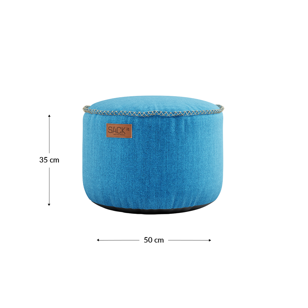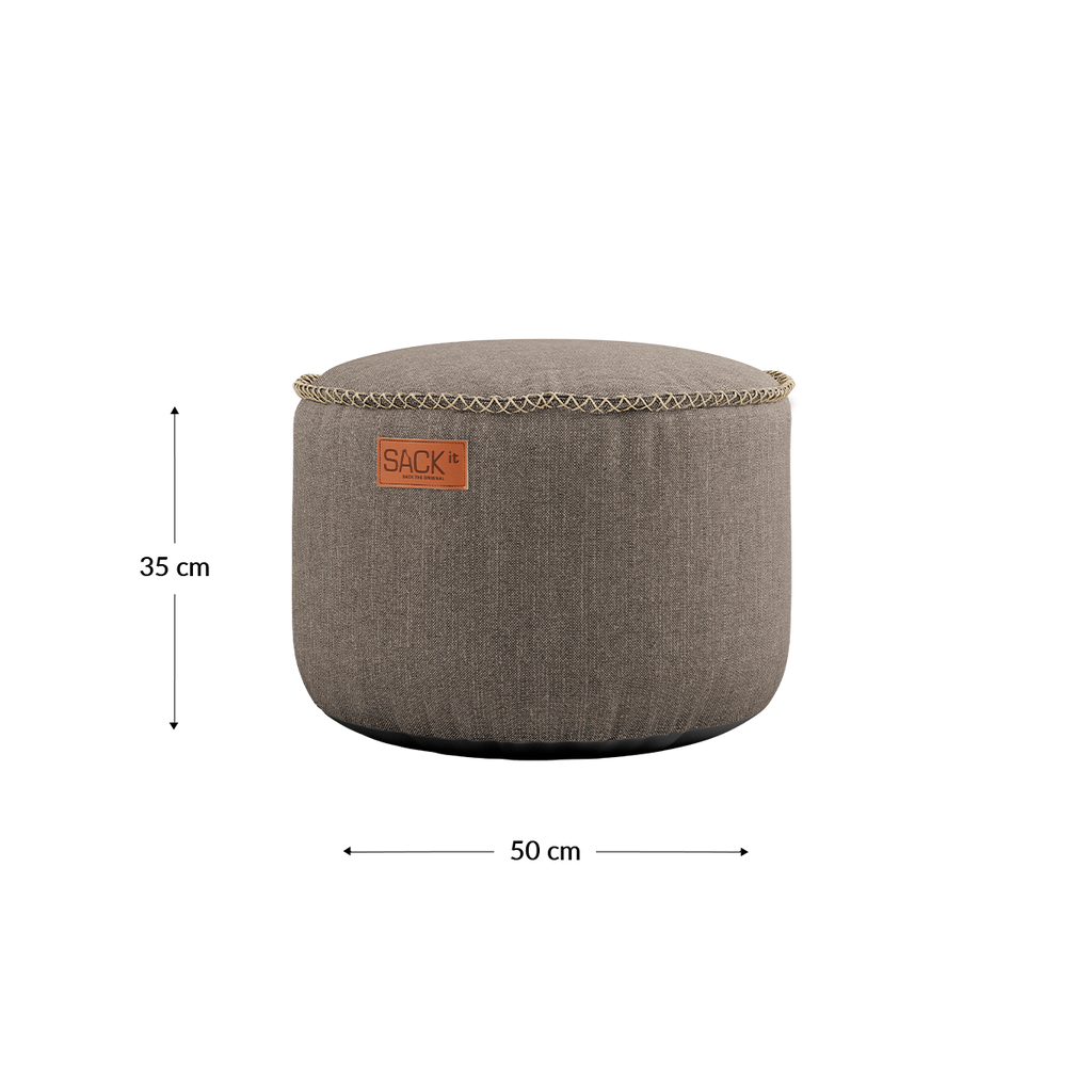 Cobana Pouf er en holdbar puff av høy kvalitet for innendørs og utendørs bruk, som holder formen godt. Cobana-stoffet er både vannavstøtende og lysfast. Bruk puffen som fotskammel for din Cobana sakkosekk, som puff til sofaen din, som en ekstra sitteplass, eller kombiner den med SACKit Serving Tray for å lage et bord - puffen er et multifunksjonelt produkt.