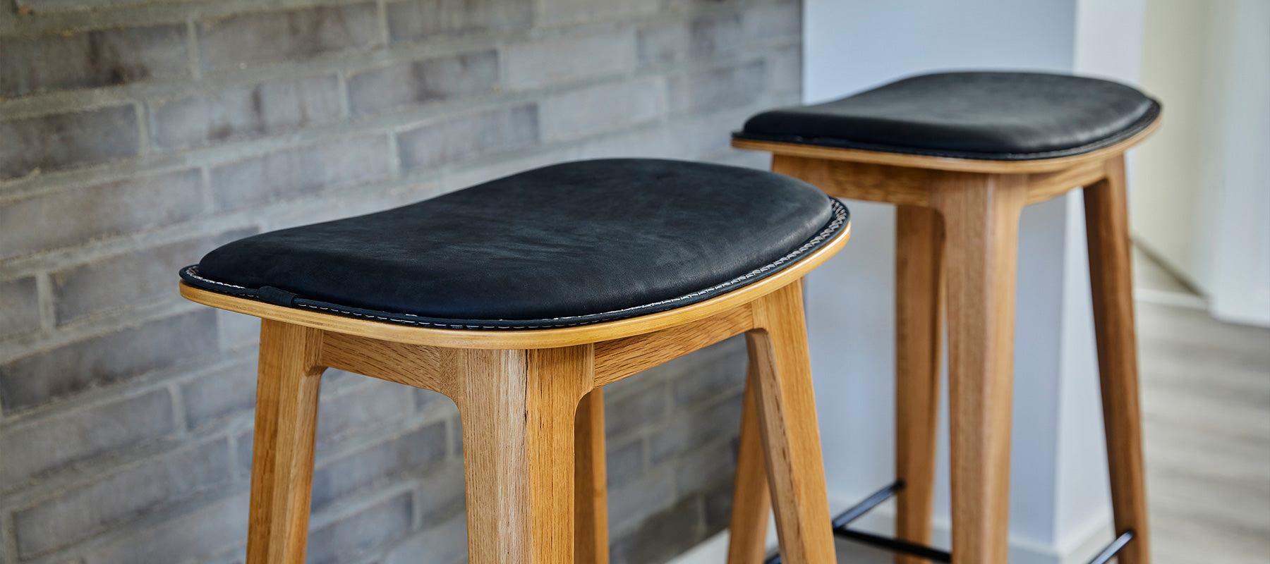 La hendene dine gli over det myke læret og glatte treverket. Nyt de vakre detaljene. SACKit barstol er laget med naturlige materialer av høy kvalitet, som gjør enhver stol unik. Rammen er laget av solid eik med en matt finish eller solid bøk med en svart finish. Settet er dekket med en høykvalitets lær fra SPOOR Leather, som er kjent for sine høye standarder, strenge kvalitetskrav og pålitelighet. Som en ekstra detalj er det mulig å få en barstol med de særegne SACKit korsstingene i lin - det er SACKits DNA.