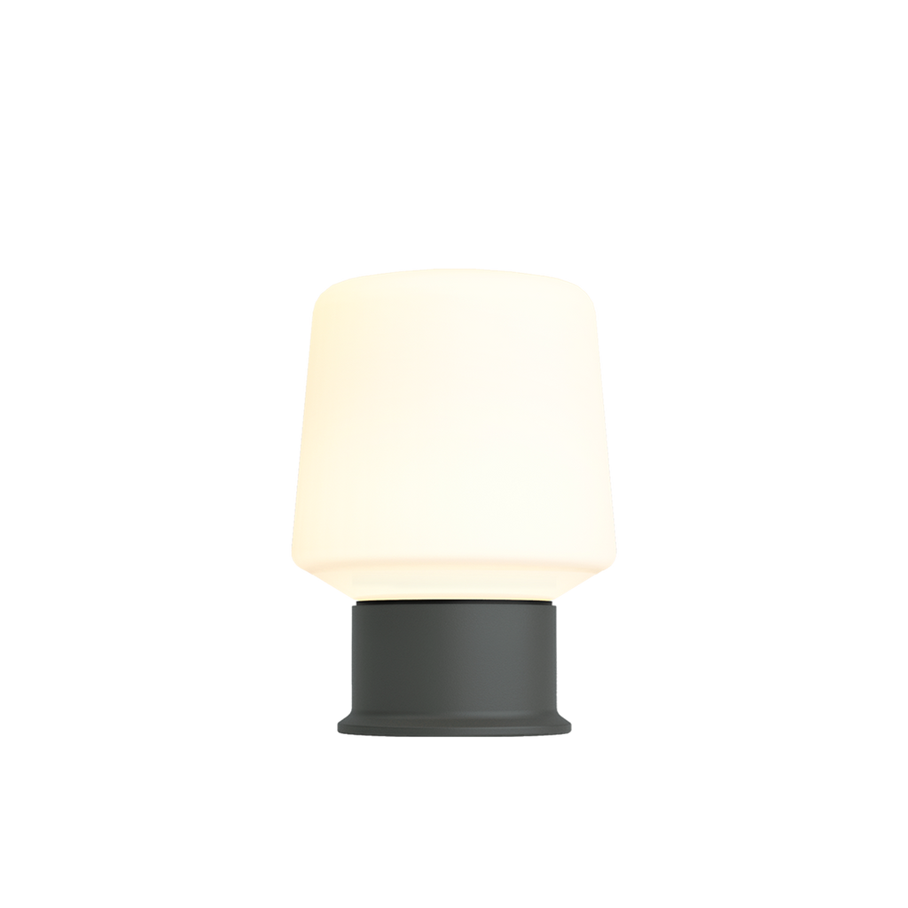 Lampen er IP67 støv- og vanntett og laget av ekstremt slitesterke materialer – og kan derfor brukes både inne og ute i all slags vær. Lampen leveres med en 3 cm base i pulverlakkert stål i antrasittgrå.