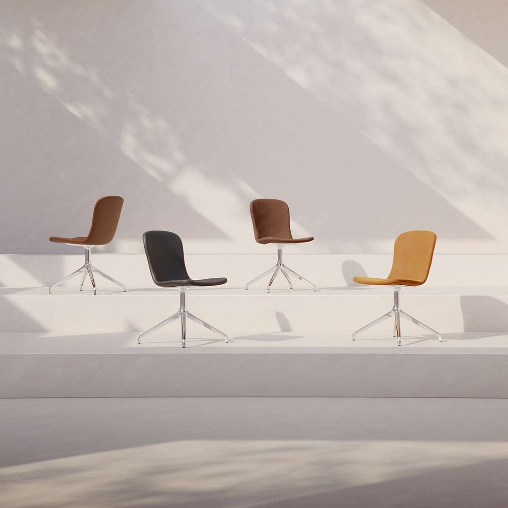 Chair no. One er en spisestol med kompromissløs design laget av nøye utvalgte materialer med fokus på bærekraft og kvalitet. Rammen er laget av resirkulerbart aluminium, mens setet er laget av resirkulert plast og trukket med SPOOR-lær av høyeste kvalitet.