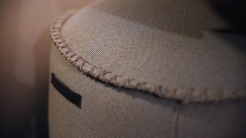 Vi anbefaler rengjøring med vår Textile Cleaner for best resultat. Selv om trekket kan løsnes, anbefaler vi ikke at du vasker det da de håndsydde stingene langs puffens kant kan bli skadet i vaskemaskinen.