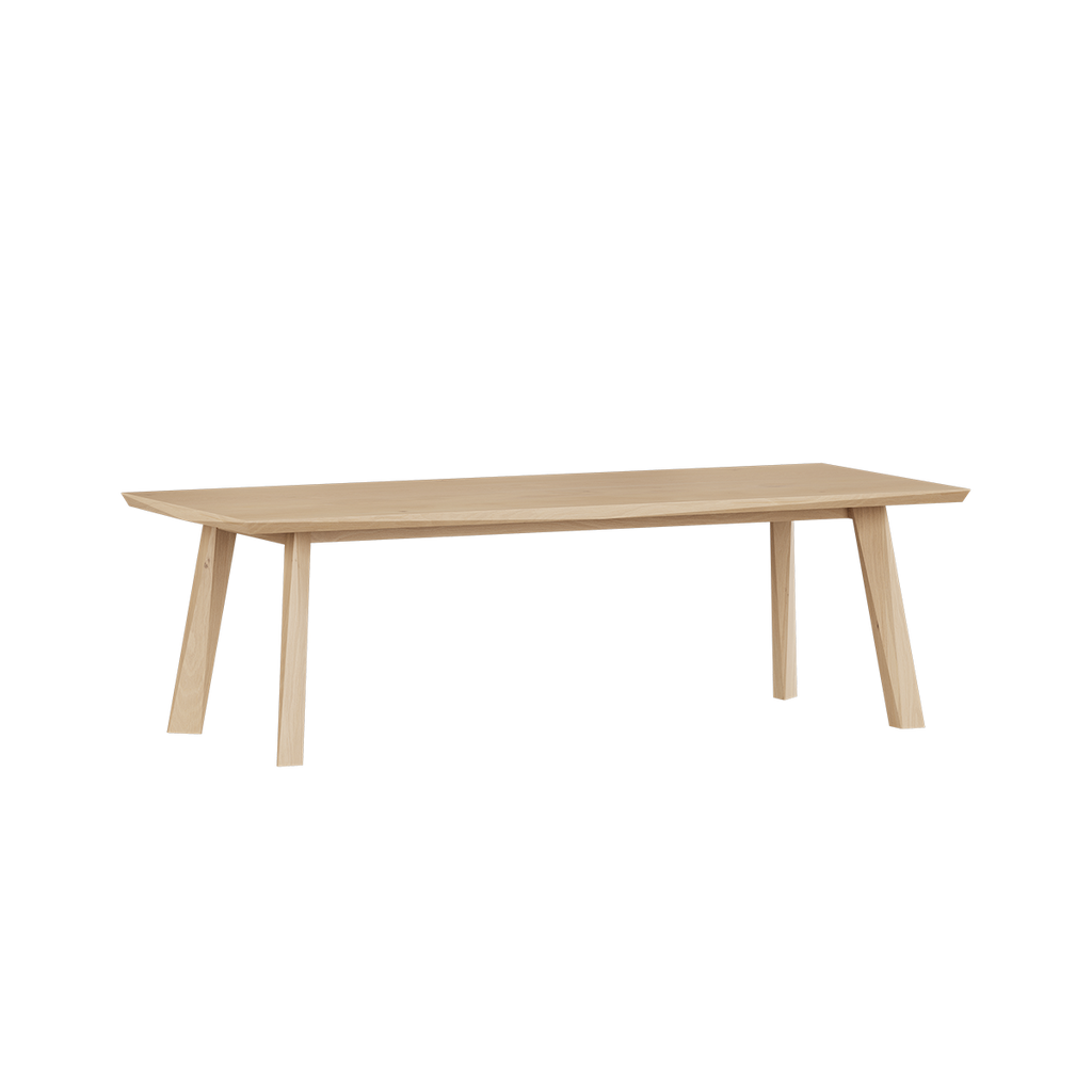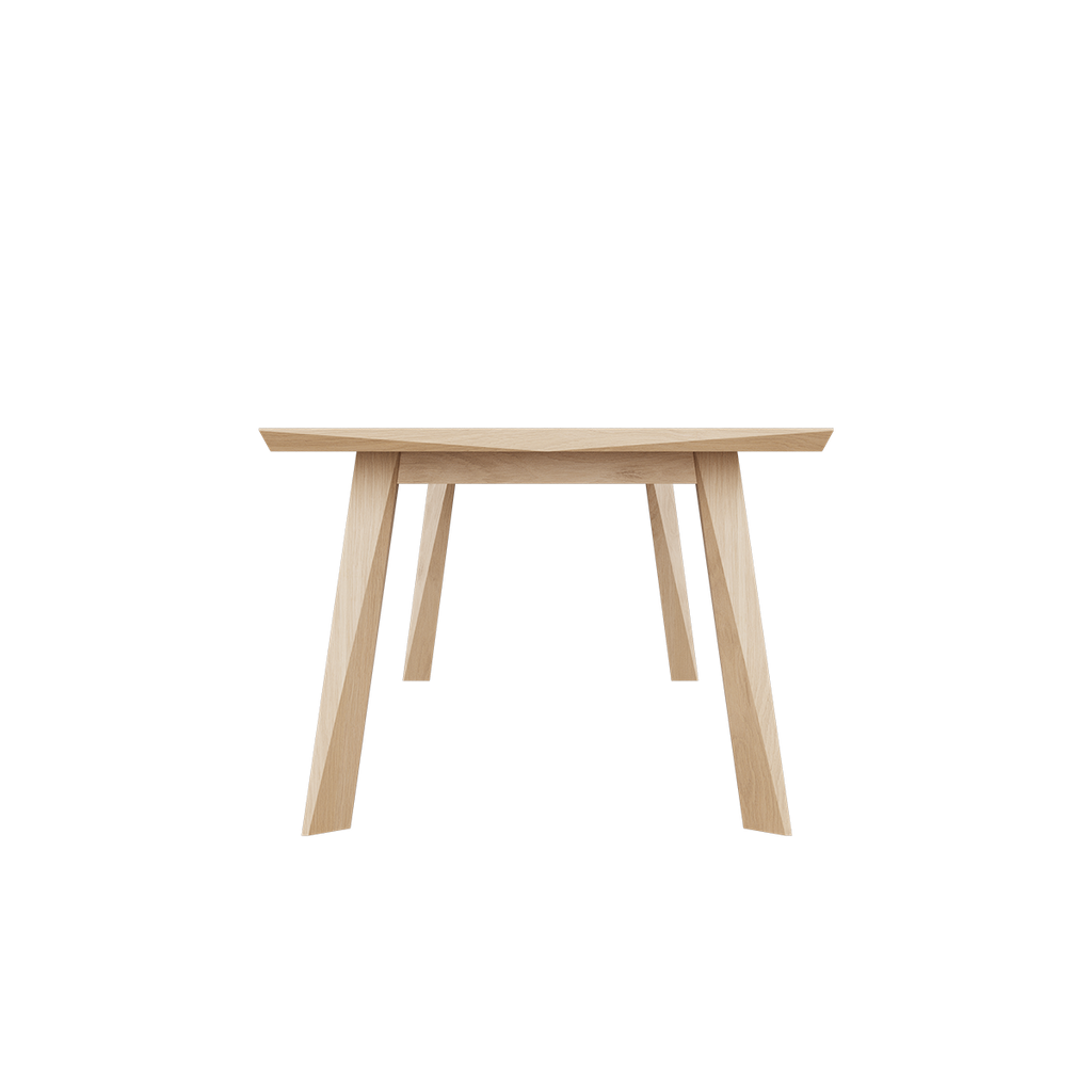 Et estetisk vakkert spisebord i europeisk eiketre med vakre håndverksdetaljer og nøye utformede fasetter. Bordets fasetter skaper et unikt uttrykk som forandrer seg med skiftende lys. Dette gir en subtil dynamikk til bordets design.