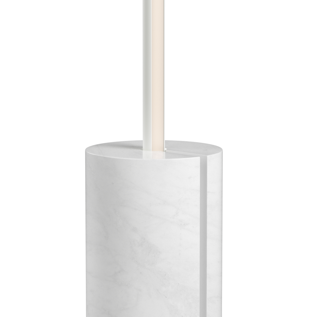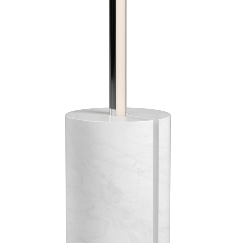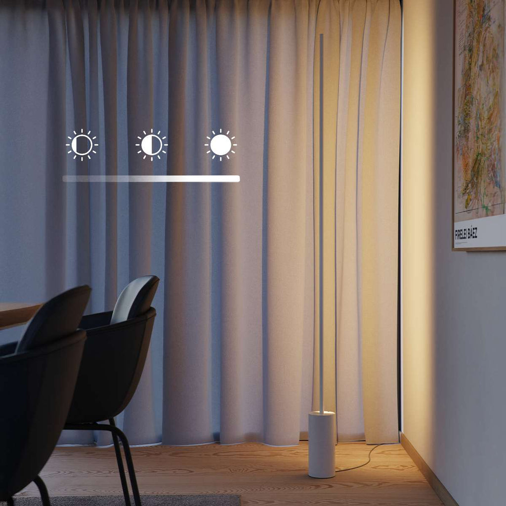 SACKit Expo 185 er en unik gulvlampe som kombinerer minimalistisk design og funksjonalitet. Lampens slanke aluminiumsprofil og stilrene marmorfot er kombinert med en vertikal, frostet LED-stripe som skaper et mykt, oppadrettet lys og gir et enkelt og minimalistisk uttrykk.