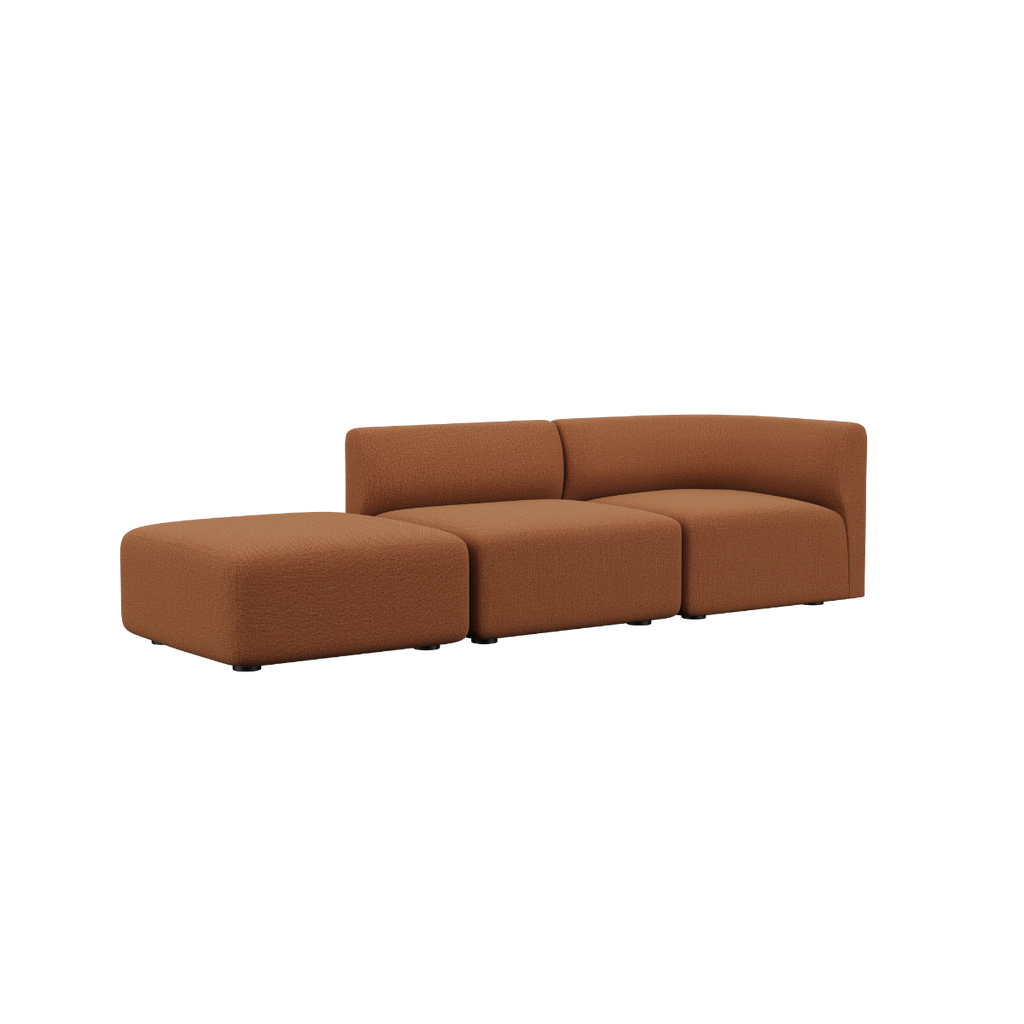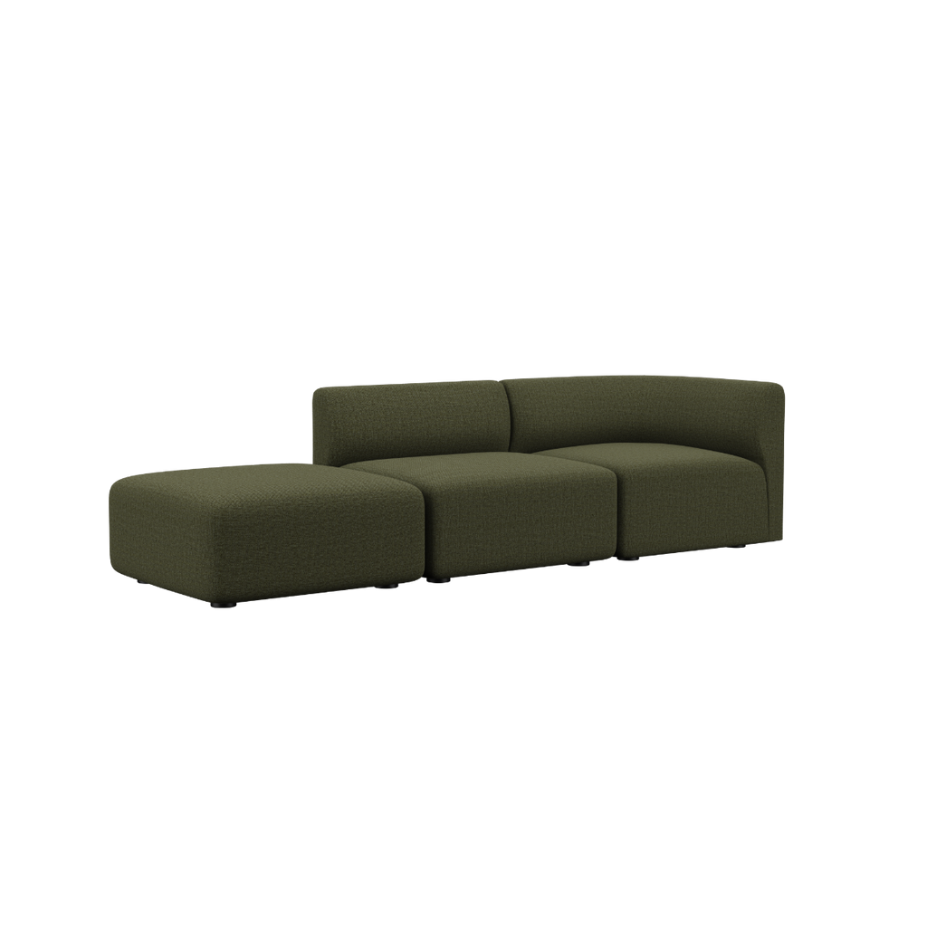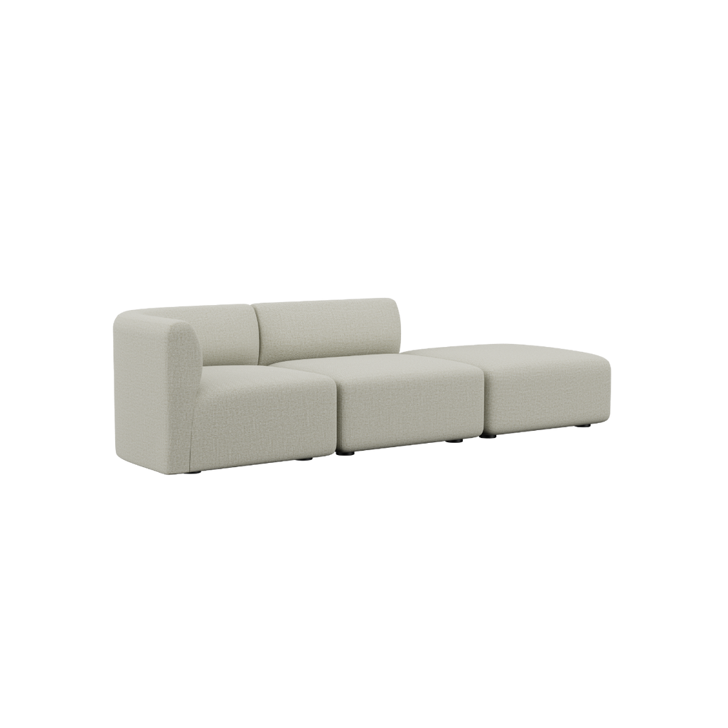 I tillegg kan puffen monteres på begge sider av sittemodulen, slik at du får en åpen ende-sofa.