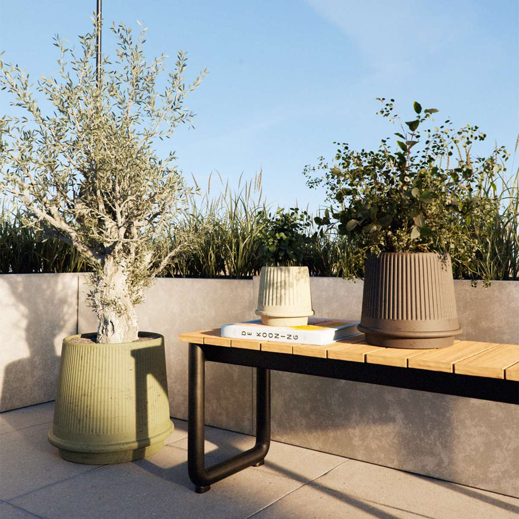 Gaia 23 er en frostbestandig utendørs potte med matt, riflet overflate. Formen er inspirert av estetikk fra antikkens Hellas – Gaia er nemlig navnet på jord- og fruktbarhetsgudinnen i gresk mytologi.