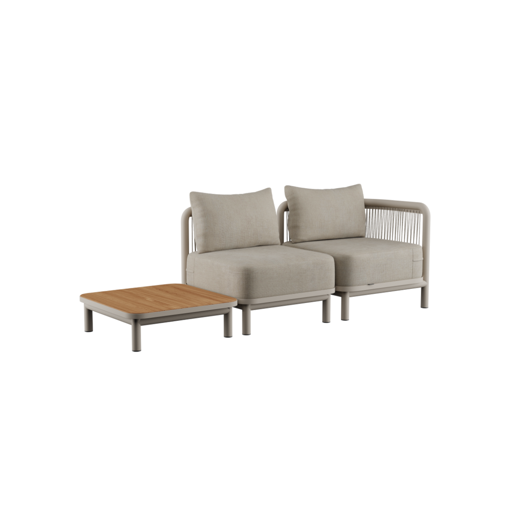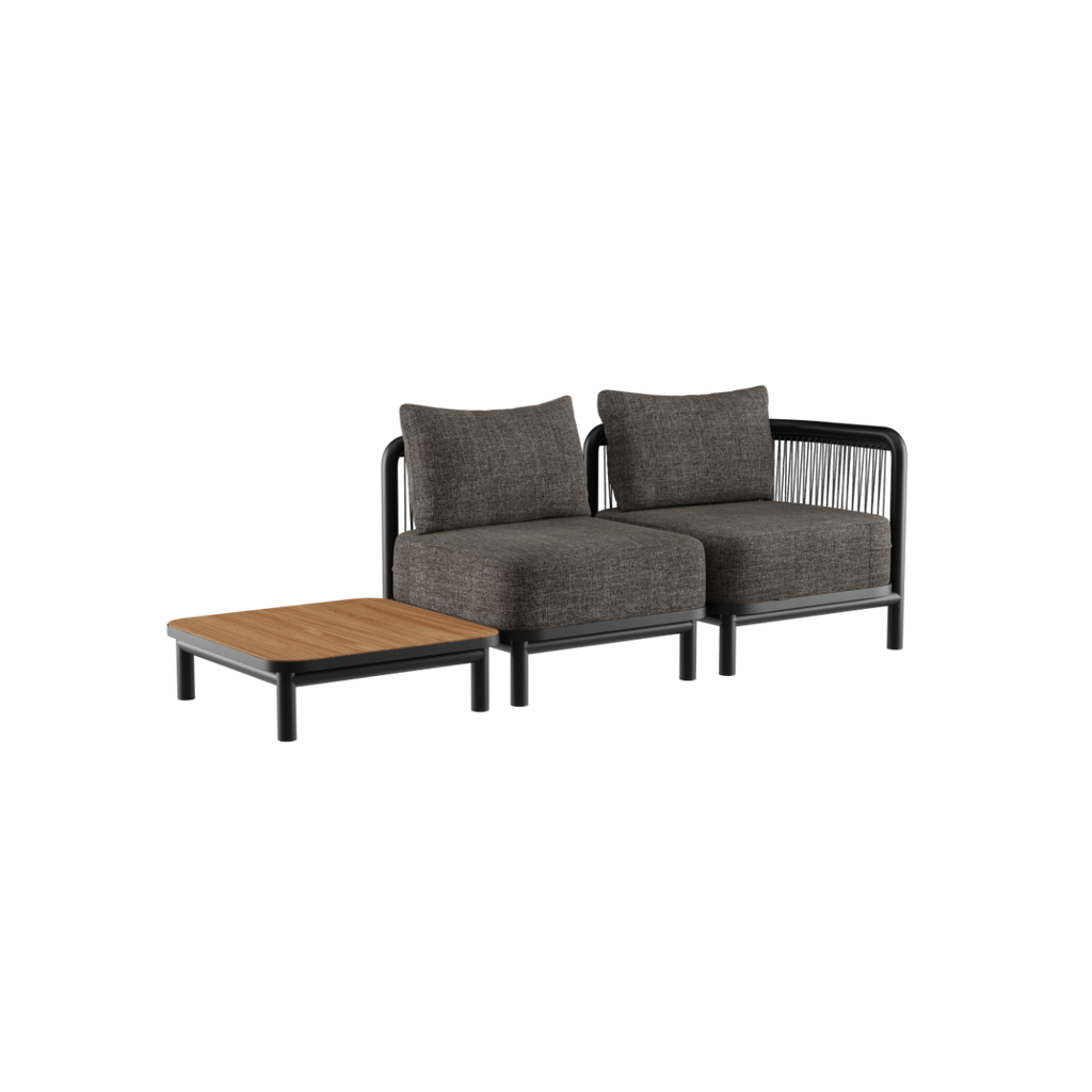 Kirra sofabordet er et utendørs salongbord laget av pulverlakkert aluminium med en elegant bordplate i teak. Som en del av Kirra Lounge-serien er dette salongbordet designet for å passe perfekt sammen med Kirra Lounge Sofa og Chair.