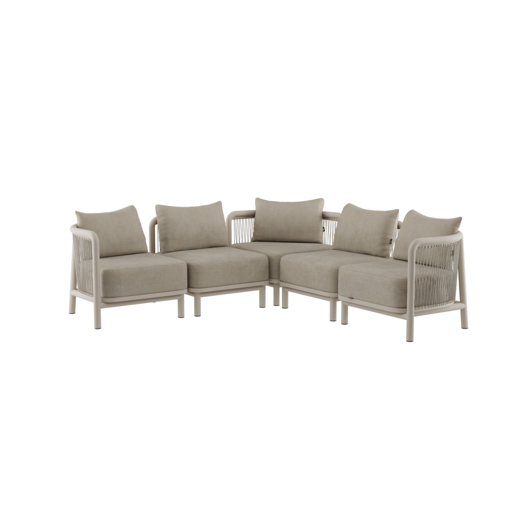 Kirra Lounge Sofa skaper det perfekte uterommet som utvilsomt vil bli sentrum for koselige stunder under åpen himmel med venner og familie. Den modulære designen gjør at du kan tilpasse sofaen til ditt uterom og dine behov.
