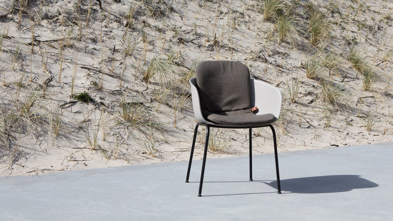 Nyt utelivet med Patio Chair No. One. En utendørs spisestol i kompromissløst design med fokus på komfort og estetikk. Skallet er laget av resirkulert plast og rammen av stål. Et design som omfavner deg med fantastisk komfort og støtte.